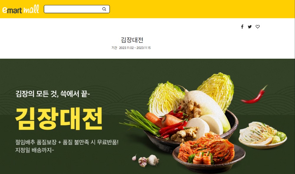 다른 마트에 비해서 다소 늦게 시작하는 이마트, 사전예약 절임배추가 가격이 낮기 때문에 물량소진의 염려가 있다고 합니다. 조기에 준비한 물량이 모두 소진된 버리면 구매가 불가능하니, 가급적 빨리 원하는 지역의 배추를 구입하세요.