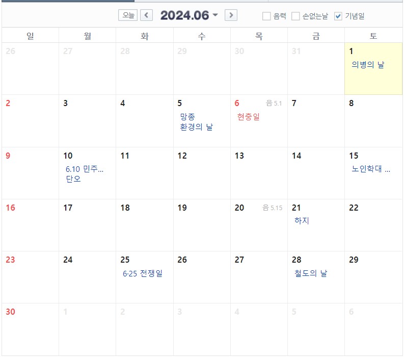 2024년 6월 6일 목요일은 현충일입니다. 그다음 날인 6월 7일 1일의 연차를 사용한다면 4일의 연휴를 보낼 수 있습니다.